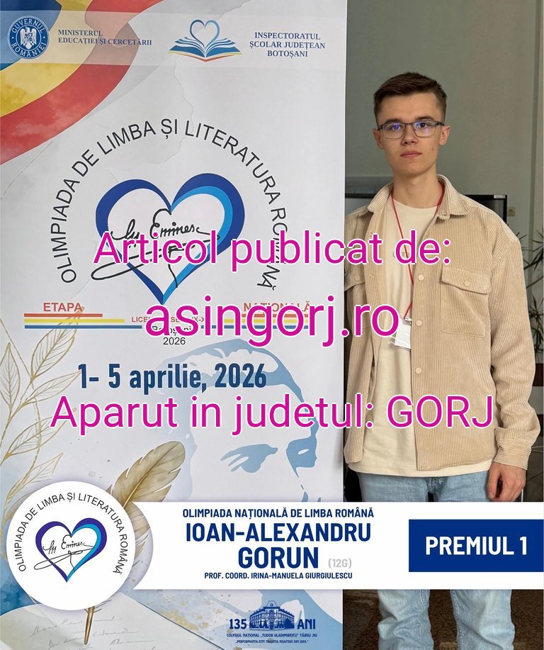 Rezultat remarcabil pentru un elev din Târgu Jiu! Ioan-Alexandru Gorun, elev în clasa a XII-a, a obținut Premiul I la Olimpiada Națională de Limba și literatura română, confirmând încă o dată nivelul înalt de pregătire al tinerilor din cadrul Colegiului Național „Tudor Vladimirescu”.