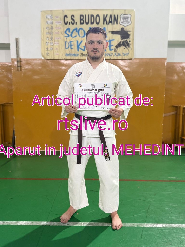 Curelea Ion Adrian, sportiv din județul Mehedinți, legitimat la Clubul Sportiv Budo Kan Karate din Târgu Jiu, continuă să se remarce în disciplina Karate Shotokan, reușind să promoveze examenul pentru centura maro 1 KYU, ultima etapă înainte de obținerea centurii negre.